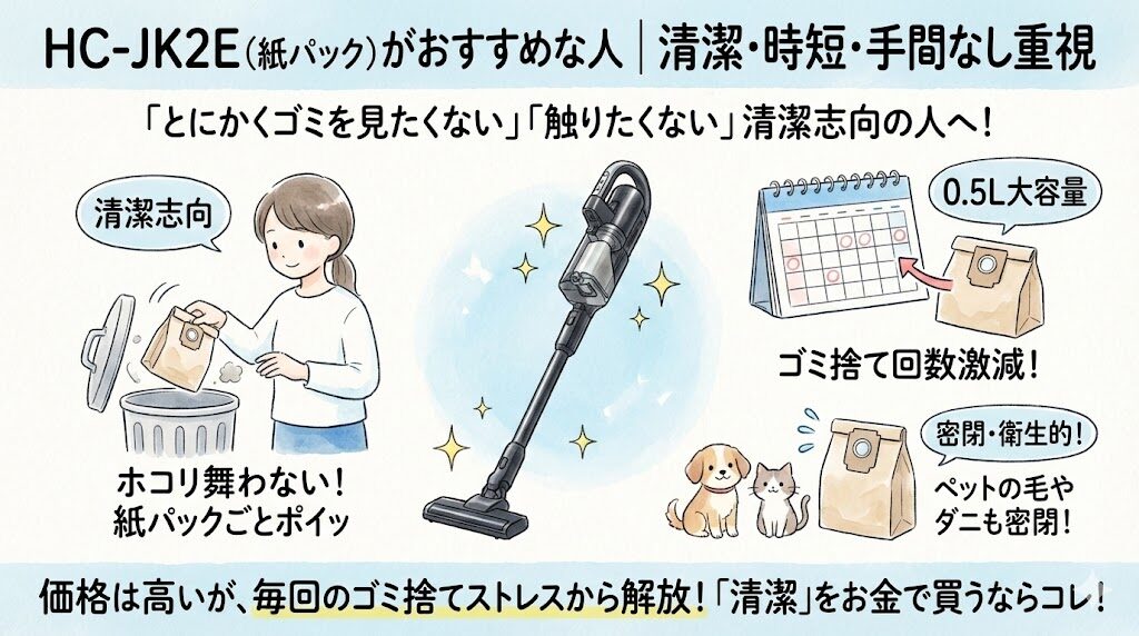 HC-JK2E (紙パック) がおすすめな人|清潔・時短・手間なし重視