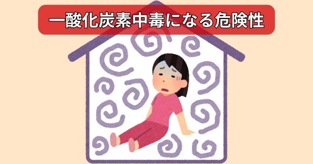換気をしないと室内に一酸化炭素が充満し、一酸化炭素中毒になる危険があります。