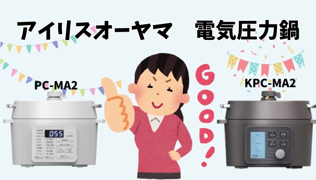 アイリスオーヤマの2.2L電気圧力鍋、PC-MA2とKPC-MA2を様々な角度から比較してきました。